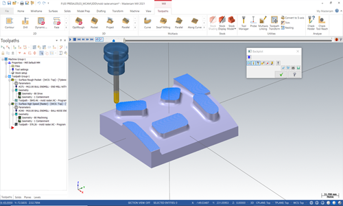 3 Axis finishing, meliputi pemotongan irisan paralel, stepover konstan, Z-level, proyek kurva, dan lainnya
